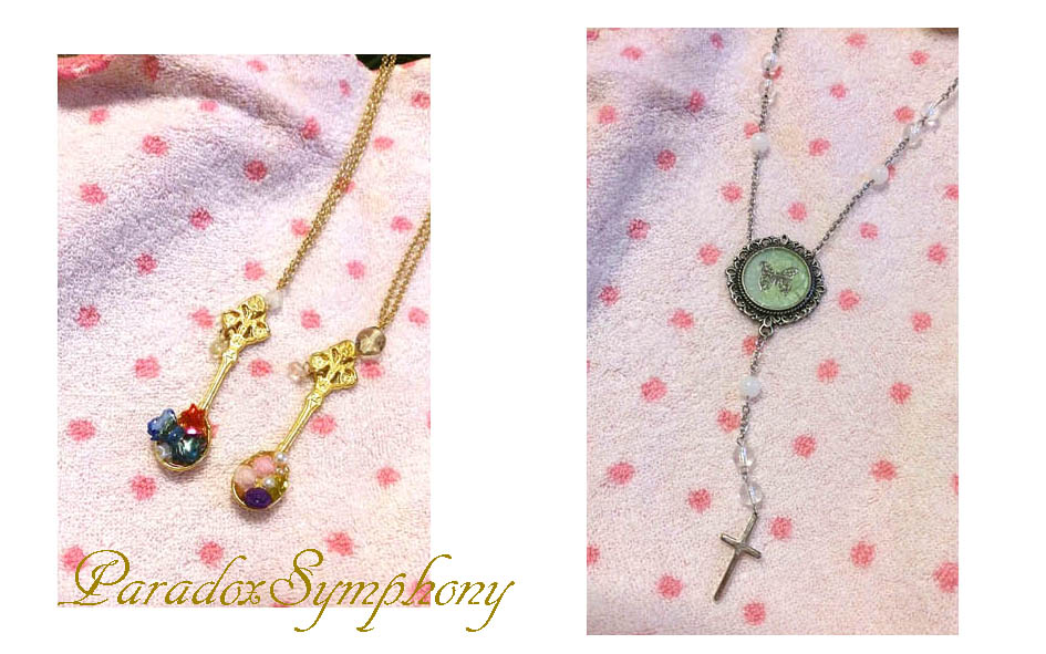 他にも、以前からスプーンモチーフのペンダントや蝶のロザリオも置かせていただいてます。